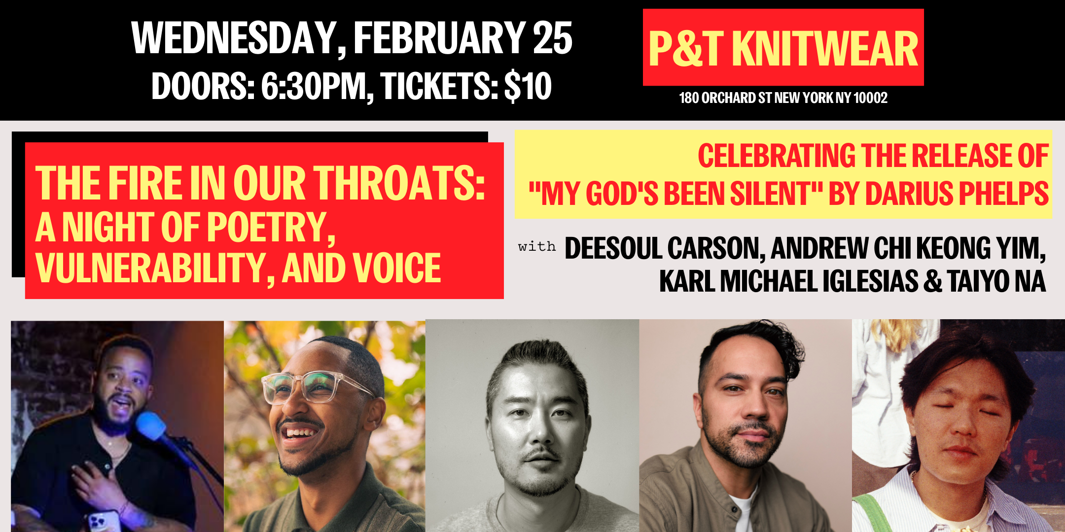 P&T Knitwear is pleased to welcome Dr. Darius Phelps to celebrate and discuss his latest collection of poetry, My God's Been Silent.
